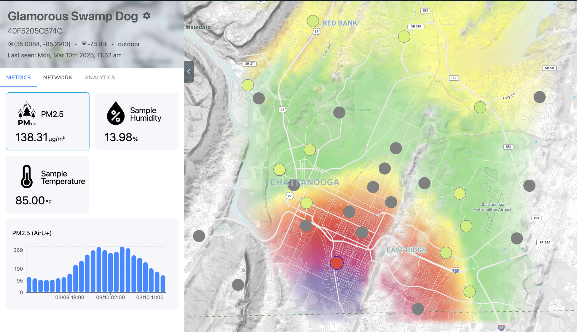 The AirU+ Air Quality Monitor tracks, stores, and visualizes PM2.5 (particulate matter), temperature, and relative humidity in real-time. Now with free exposure alerts to keep you informed when air quality changes.